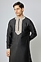 Featuring a black kurta in silk and chanderi base with embroidery. It is paired with pants. Accentuate it with kolhapuri sandals for a festive occasion, engagement or wedding ceremony.