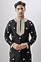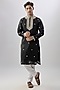 Featuring a black kurta in silk base. It is paired with pants. Accentuate it with kolhapuri sandals for a festive occasion, wedding, sangeet or engagement ceremony.