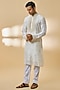Featuring an ivory kurta in silk chanderi base. It is paired with pants. Accentuate it with classic mojaris and a stole for a festive occasion, wedding or engagement ceremony.