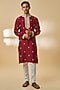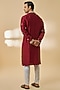 Featuring a maroon kurta in chanderi and silk base. It is paired with pants. Accentuate it with classic mojaris and a stole for a festive occasion, wedding or engagement ceremony.