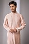 Featuring a pink kurta in silk chanderi base. It is paired with pants. Accentuate it with kolhapuri sandals for a festive occasion, wedding or engagement ceremony.