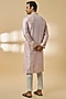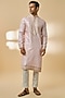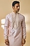 Featuring a pink kurta in silk chanderi base. It is paired with pants. Accentuate it with classic mojaris and a stole for a festive occasion, wedding or engagement ceremony.