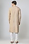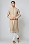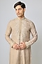 Featuring a white kurta in tussar silk base with embroidery. It is paired with pants. Accentuate it with kolhapuri sandals for a festive occasion, engagement or wedding ceremony.