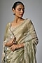 Featuring a mint green saree in tissue base with hand and machine embroidery. It is paired with an unstitched blouse fabric. Style it with an embellished blouse, statement jewellery and heels for a wedding or engagement ceremony.