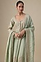 Featuring a mint jacket kurta tissue base with aari, sequins, zardosi hand and machine embroidery. It is paired with sharara pants and an organza dupatta having boota detailing. Accentuate it with statement earrings, heels, and a sleek clutch for a sangeet or engagement ceremony.