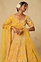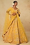 Featuring a mustard lehenga in raw silk base with floral, thread and zardosi hand embroidery. It is paired with a matching blouse and a dupatta.