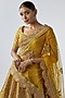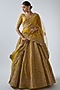 Featuring a mustard lehenga in raw silk base with zardosi hand and machine embellishments, including a can-can. It is paired with an embellished blouse and a dupatta. Accentuate this designer lehenga set with heels and polki jewellery for a bridal look.
