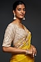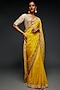Featuring a mustard yellow saree in pure organza base with resham, cutdana, and sequins embroidery. It is paired with a contrasting beige embroidered blouse.