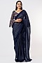Featuring a navy blue saree in a fancy fabric base. It is paired with a matching blouse fabric having sequins embellishments.