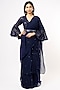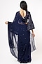 Featuring a navy blue saree in organza base. It is paired with a matching sequinned blouse fabric and an embroidered belt.