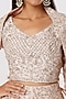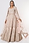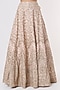 Featuring a peach lehenga in chanderi base with aari work. It is paired with a matching blouse and a dupatta.