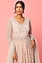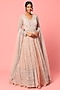 Featuring a peach lehenga in organza base with sequins embroidery. It is paired with a matching jacket and dupatta.