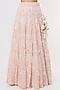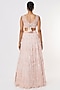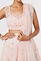 Featuring a peach lehenga in net base with floral resham and sequin hand embellishments. It is paired with a matching blouse and a dupatta.