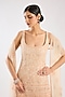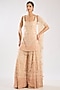Featuring an exquisite Peach Sharara crafted in a net base, adorned with hand and machine embroidery. It is paired with an embroidered kurta and a dupatta. Elevate this designer ensemble with kundan polki earrings, a sleek hairdo, and embellished block heels for a striking look, perfect for weddings, engagements or sangeet ceremonies.