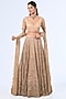 Featuring a peach lehenga in organza base with cutdana, sequins and zardosi embroidery, including a can-can. It is paired with a blouse and a net embellished dupatta. Accentuate it with kundan polki or pearl jewellery, embellished heels and a potli bag for a bridal look, Perfect for your wedding, sangeet or engagement ceremony.