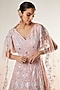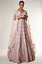 Featuring a peach gown in organza base with resham zardosi zari and sequins work, including a can-can. It is paired with a matching dupatta.