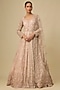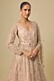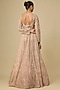 Featuring a peach lehenga in organza base with hand and machine embroidery. It is paired with a jacket and a dupatta. Accentuate it with diamond jewellery and heels for a bridal, engagement or a reception look.