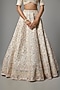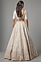 Featuring a peach lehenga in raw silk base with embroidery. It is paired with an embroidered blouse and two dupattas. Accentuate it with kundan polki jewellery, a sleek bun and block heels for a wedding or engagement ceremony.