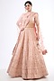 Featuring a peach lehenga in raw silk base with sequins, moti, cutdana hand and machine embroidery. It is paired with a handwork blouse and a dupatta. Accentuate with statement jewellery and heels for a wedding or engagement ceremony.