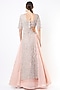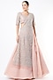 Featuring a peach lehenga in net base with floral cutdana and sequins embroidery, including cancan. It is paired with a matching blouse and a dupatta.