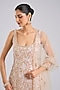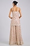 Featuring a peach short kurta in silk base. It is paired with sharara pants and a dupatta. Accentuate it with statement jewellery, a potli bag and embellished heels, ideal for a haldi, wedding or engagement ceremony.