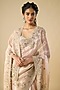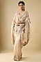 Featuring an exquisite Peach Saree crafted in a tissue base, adorned with hand and machine embroidery. Elevate this designer ensemble with an embellished blouse, zirconia or swarovski jewellery, a floral hairdo, and embellished block heels for a striking look, perfect for weddings, sangeet or engagements ceremonies.