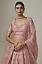 Featuring a pink lehenga in metallic organza base with motif hand embroidery. It is paired with a aari hand embroidered blouse and an organza dupatta. Accentuate the designer lehenga with statement jewellery and embellished heels for a wedding, sangeet or engagement ceremony.