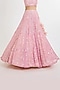Featuring a pink lehenga in net base with sequins, zardosi, cutdana hand and machine embroidery. It is paired with a blouse and a dupatta. Accentuate the designer lehenga with diamond jewellery, low bun and embellished heels for a wedding, sangeet or engagement ceremony.