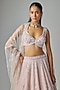 Featuring a pink lehenga in organza base. It is paired with a blouse and a dupatta. Accentuate with zircon jewellery and heels for a wedding or engagement ceremony.