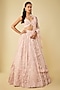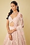 Featuring a pink lehenga in organza base with zardosi hand embroidery. It is paired with a blouse and a net dupatta. Accentuate designer lehenga with statement jewellery and heels for a bridal look.