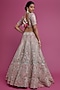 Featuring a pink lehenga in raw silk base with gota, sequin and cutdana embroidery, including a can-can. It is paired with a matching embroidered blouse and a dupatta.