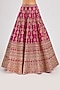 Featuring a pink lehenga in raw silk base with embroidery. It is paired with an embroidered blouse and an embroidered dupatta. Accentuate this designer lehenga with polki jewellery, a floral low bun and block heels for a perfect bridal look, ideal for a wedding or engagement ceremonies.