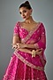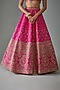 Featuring a pink lehenga in raw silk base with sequins, cutdana hand and machine embroidery, including a can-can. It is paired with a matching blouse and a dupatta.