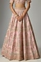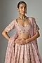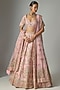 Featuring a pink lehenga in raw silk base. It is paired with a blouse and a dupatta. Accentuate it with statement jewellery, a clutch and heels, perfect for weddings or a bridal look.