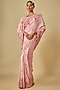 Featuring a pink saree in tissue base with hand and machine embroidery. It is paired with an unstitched blouse fabric. Accentuate it with statement jewellery and embellished heels for a wedding, sangeet or engagement ceremony.