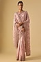 Featuring a pink saree in tissue base with hand and machine embroidery. It is paired with an unstitched blouse fabric. Accentuate it with statement jewellery and embellished heels for a wedding, sangeet or engagement ceremony.