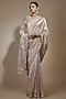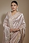 Featuring a pink saree in tissue organza base with sequin embellishments. It is paired with an unstitched blouse fabric. Accentuate it with statement jewellery and heels for a wedding or engagement ceremony.