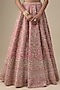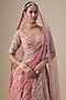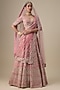 Featuring a pink lehenga in velvet base with hand embroidery. It is paired with a blouse and two dupattas. Accentuate it with statement jewellery and heels for a bridal look.