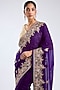 Featuring a purple saree in organza base with embroidery. It is paired with an unstitched blouse. Elevate this designer ensemble with kundan polki jewellery, a floral hairdo, and embellished block heels for festive occasions or weddings ceremonies.