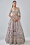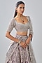 Featuring a purple lehenga in velvet base with hand embroidery. It is paired with an embroidered blouse and a pair of dupattas. Accentuate the designer lehenga set with zircon or swarovski jewellery, embellished heels and a potli bag for bridal look, Perfect for your wedding, sangeet or engagement ceremony.