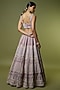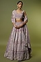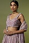Featuring a purple lehenga in velvet base with sequins, cutdana and zari hand embroidery, including a cancan. It is paired with a blouse and a net dupatta. Accentuate the designer lehenga set with statement jewellery and heels for a wedding or engagement ceremony.