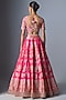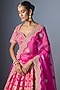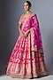 Featuring a rani pink lehenga in banarasi base with embroidery. It is paired with a raw silk embroidered blouse and a net embroidered dupatta. Accentuate the designer lehenga with kundan polki or gold jewellery, embellished heels and a potli bag for a bridal look, Perfect wear for your wedding or engagement ceremony.