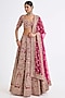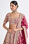 Featuring a rani pink lehenga in raw silk base with zari hand and machine embroidery. It is paired with a hand embroidered blouse and a dupatta. Accentuate it with statement jewellery and embellished heels for a wedding or engagement ceremony.