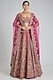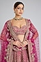 Featuring a rani pink lehenga in raw silk base. It is paired with a blouse and a dupatta. Elevate this designer ensemble with kundan polki jewellery, a floral hairdo, and embellished block heels for a striking bridal look, perfect for weddings or engagement ceremonies.
