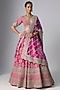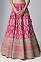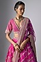Featuring a rani pink lehenga in raw silk base. It is paired with a blouse and a dupatta. Accentuate it with statement jewellery, a clutch and heels, perfect for weddings or a bridal look.