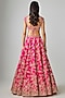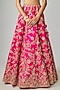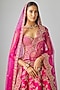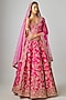 Featuring a rani pink lehenga in raw silk base. It is paired with a blouse and two dupattas. Elevate this designer ensemble with traditional gold or kundan jewellery, a floral hairdo, and embellished block heels for a regal bridal look, perfect for weddings or engagement ceremonies.