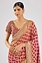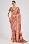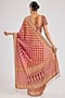 Featuring a red saree in bandhej fabric base. It is paired with a blouse. Accentuate it with statement earrings, a sleek low bun, and metallic heels for a a wedding or engagement ceremony.
