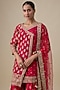 Featuring a red kurta in chanderi silk base with aari, sequins, zardosi hand and machine embroidery. It is paired with sharara pants and an organza dupatta having boota detailing. Accentuate it with statement earrings, heels, and a sleek clutch for a sangeet or engagement ceremony.