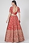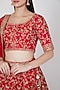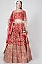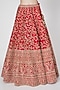 Featuring a red lehenga in raw silk base with zari, sequins, cutdana, zardosi, pearl, and thread embellishments including a cancan. It is paired with a matching blouse and a net dupatta.