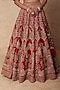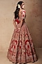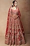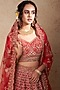 Featuring a red lehenga in raw silk base with cutdana, resham, sequins and zardosi embossed embroidery. It is paired with a matching floral embroidered blouse and a dupatta.